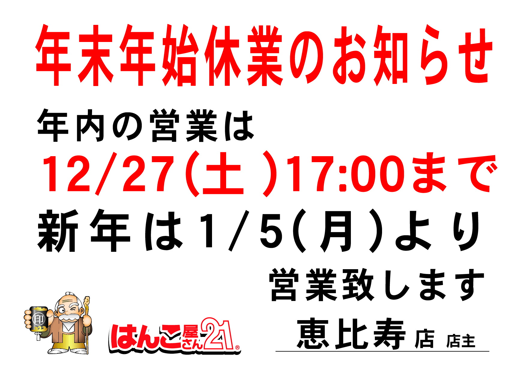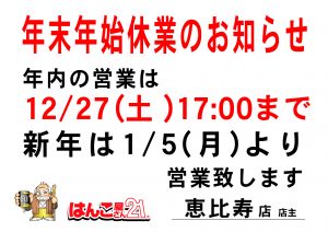 年末年始休業
